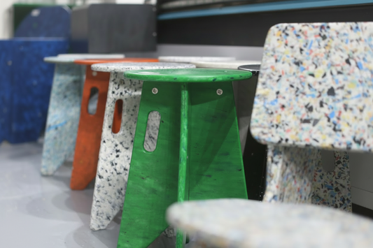 Adoptamos la circularidad mediante el uso de materiales 100% reciclados de fuentes locales para elaborar muebles, arte y artículos para el hogar todo nuevamente reciclable.