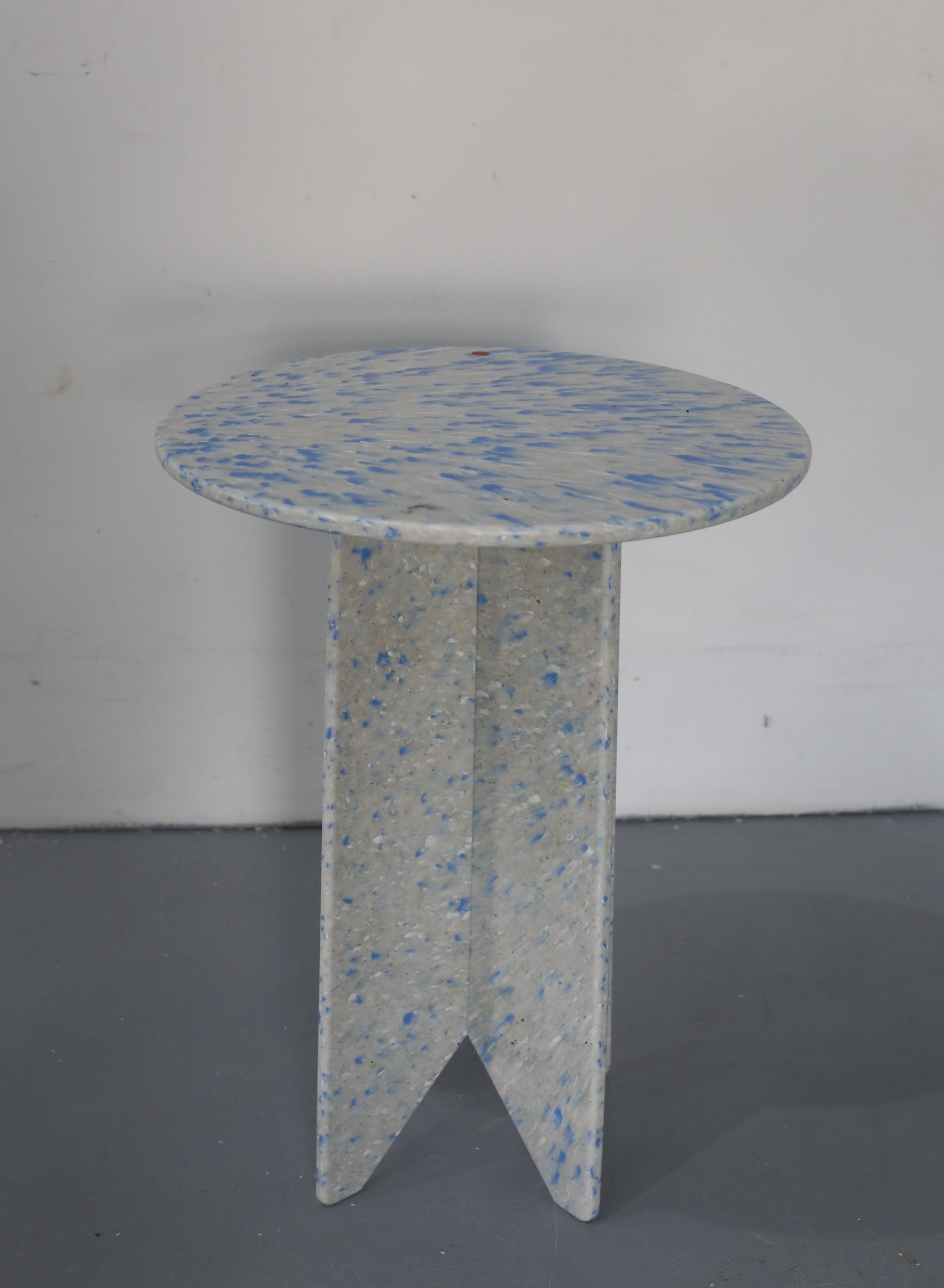 Fabricada 100 % con plástico reciclado, su superficie es suave, resistente y visualmente única —ningún patrón es igual a otro, porque cada pieza cuenta una historia distinta de transformación.