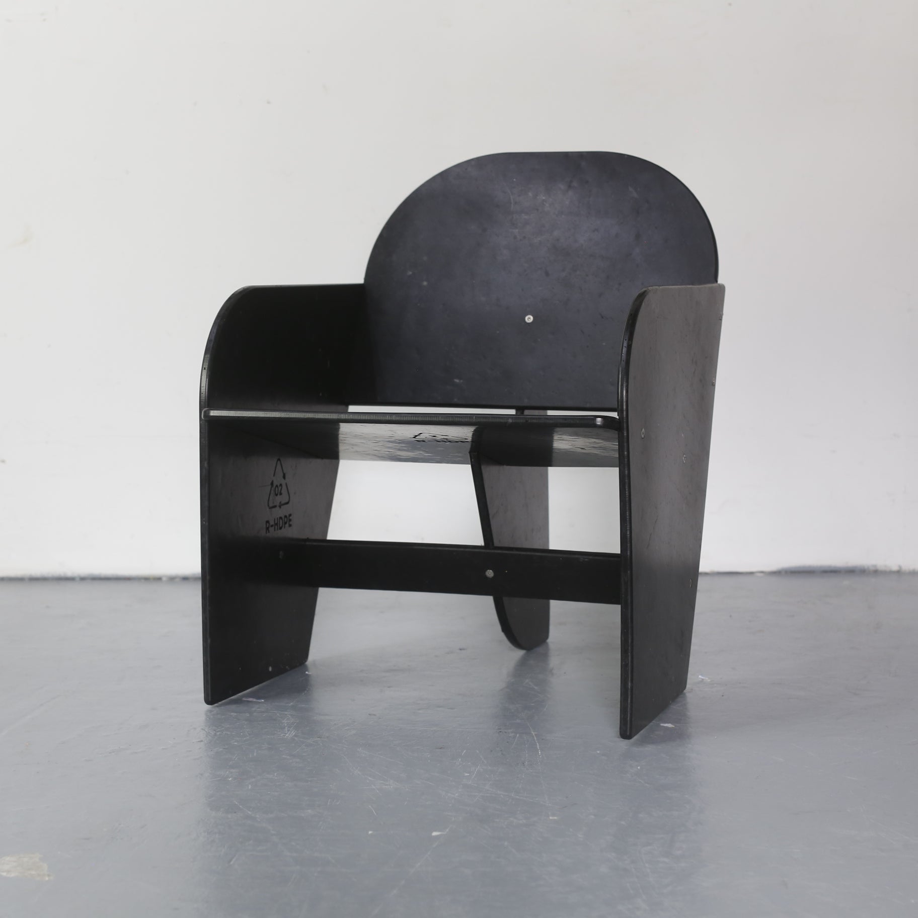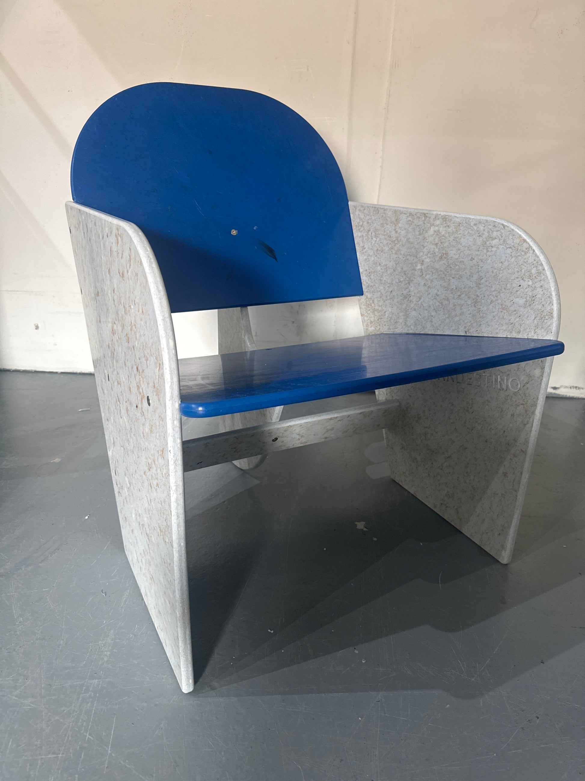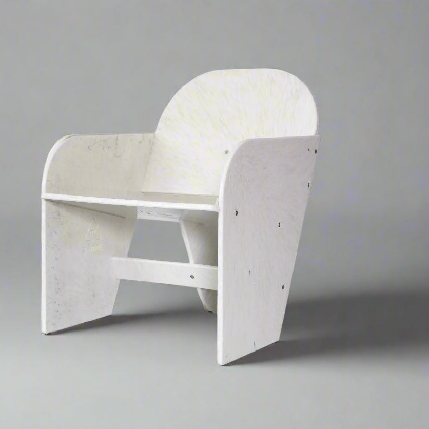 Fabricada con 18 kg de plástico HDPE reciclado, el equivalente a 1,200 botellas plásticas, esta silla da nueva vida a materiales descartados, apoyando la economía circular y la producción local.