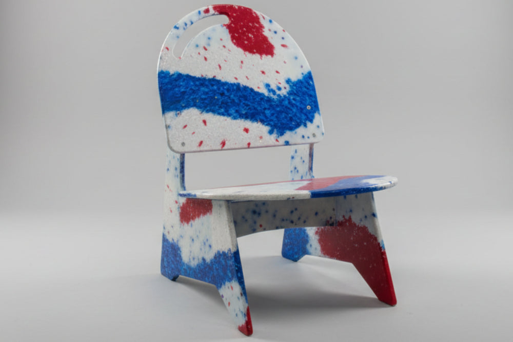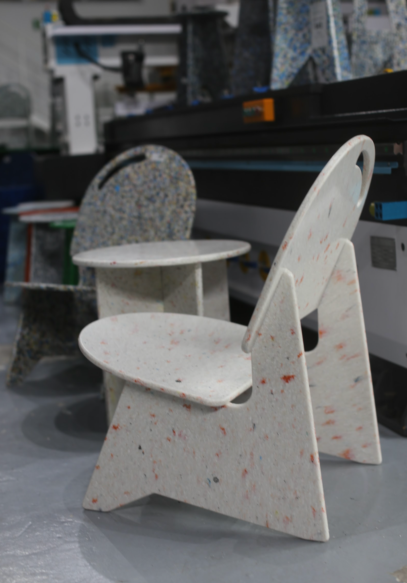 Cada silla está hecha con 10.6 kg de plástico HDPE reciclado, lo que equivale a aproximadamente 707 botellas de shampoo —la cantidad que una persona promedio descarta en 64 años. Un objeto cotidiano convertido en diseño con propósito.